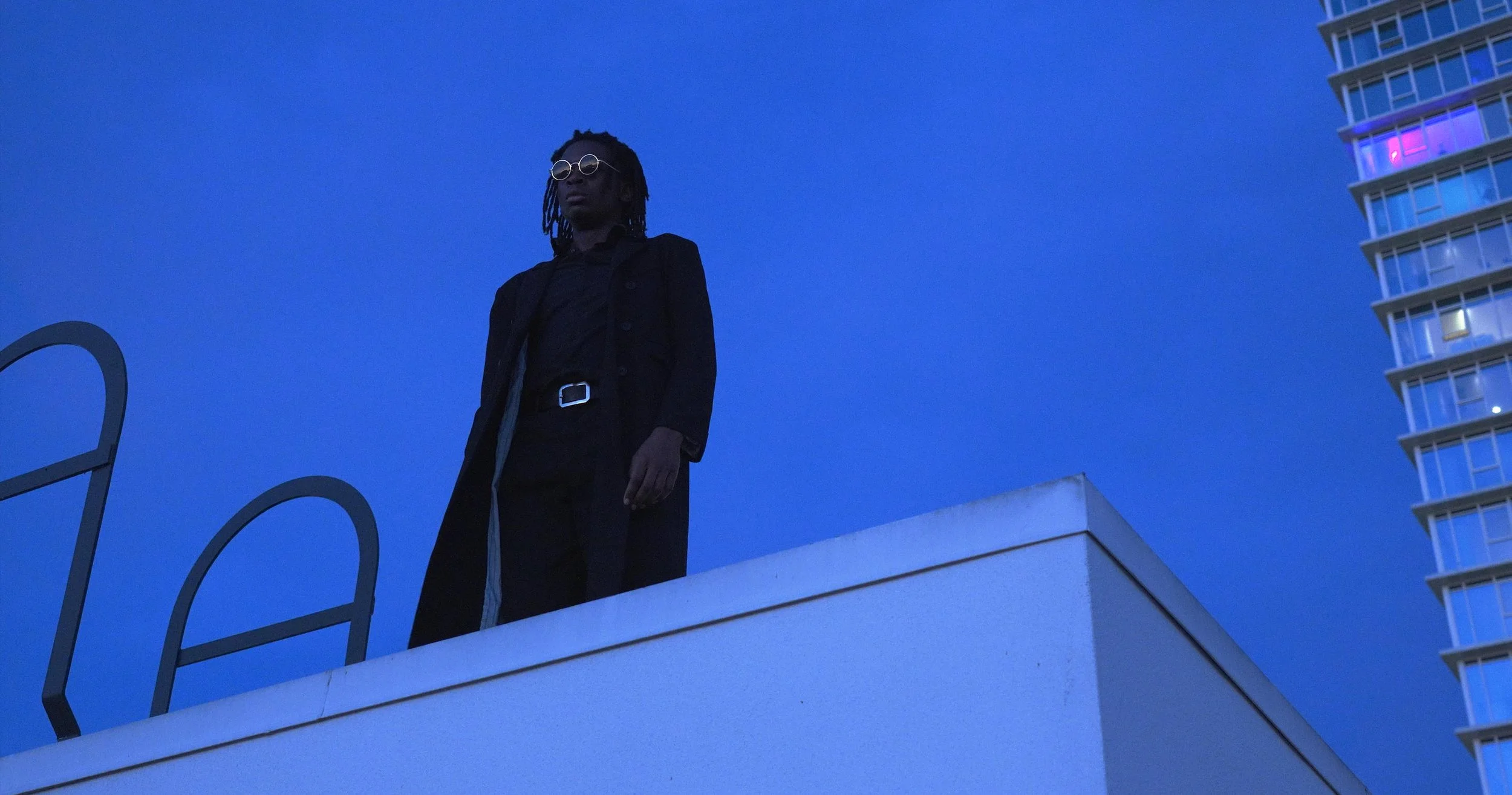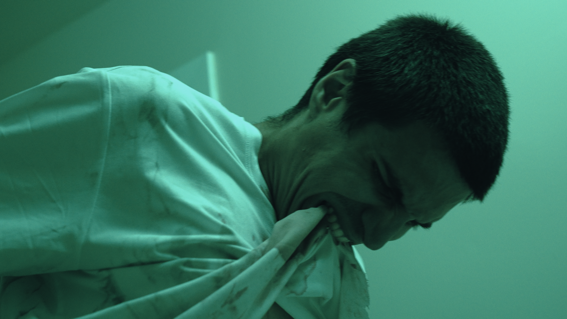 This is a 3–5 minute narrative short film set in Los Angeles, USA. A wounded man—the Prey—runs through the city, desperate to disappear. He makes it into an apartment bathroom and tries to stop the bleeding with gauze, shaking as he pulls a small bag of white powder from his pocket and hides it again—proof that whatever brought him here isn’t clean.